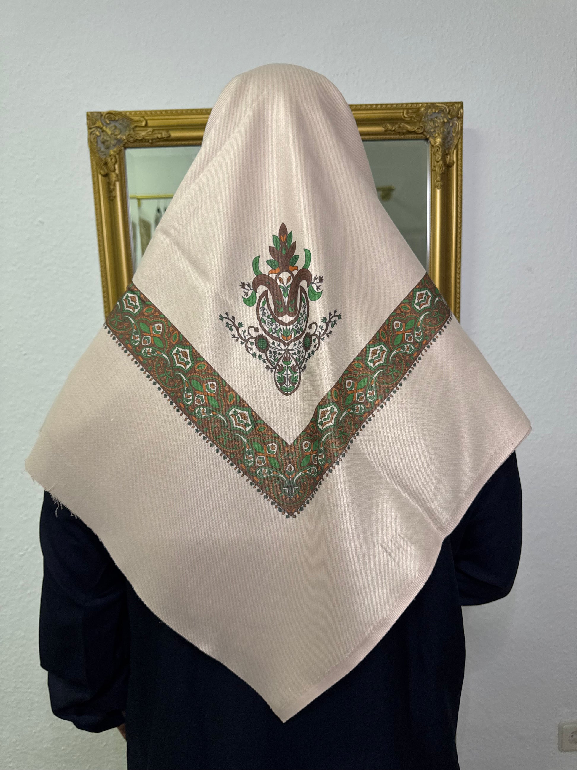 Traditioneller Yemeni Shemagh im Kashmiri Stil mit ornamentalem Muster. Der Stoff ist leicht, formstabil und pflegeleicht, wodurch Farben und Struktur lange erhalten bleiben.